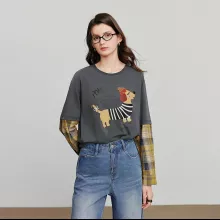 This hoodie is more than just a simple layer – it’s a statement piece. Whether you’re heading out for a coffee date, enjoying a casual day out with friends, or lounging at home, this hoodie gives you all the comfort and style you need. The cute puppy print adds a touch of whimsy to the classic hoodie design, while the spliced sleeves elevate it to something more than just ordinary. The cotton-polyester blend fabric ensures you’re warm and cozy but never too hot, making it an ideal choice for autumn’s fluctuating temperatures.