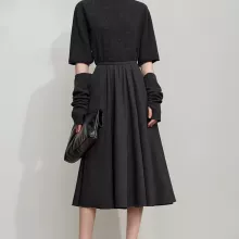 Step into comfort and confidence with this elegant A-line midi skirt designed for modern women who want style without stress. With a clean, solid gray tone and a relaxed silhouette, this skirt brings a polished look that works just as well in the office as it does on a casual day out. The loose fit flatters your natural shape while allowing easy movement, making it a reliable piece you can wear again and again.