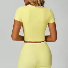 Elevate your fitness wardrobe with this women’s color block V-neck slim fit crop top. Designed for both style and performance, this short sleeve top hugs your curves while allowing complete freedom of movement. Perfect for yoga, running, gym sessions, or any active lifestyle, it combines a modern, flattering design with high-performance materials that keep you comfortable from start to finish.