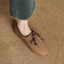 Make every step count with these Women’s Cow Leather Lace-Up Loafers — the perfect blend of classic charm and modern casual. Crafted from high-quality genuine cow leather, these stylish ballet flat-style loafers are designed for women who appreciate both fashion and comfort. With a sleek, solid design and a round toe finish, they’re perfect for everyday wear while offering a refined touch that suits city streets, laid-back weekends, or casual outings.