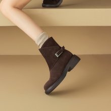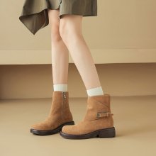 These boots are more than just footwear—they are a statement. The rich cow suede not only looks sophisticated but also provides a soft touch against the skin. The plush insole ensures every step feels cushioned, while the square heel supports long hours of wear without discomfort. Their ankle height is perfect for layering with different outfits, making them incredibly versatile for winter and early spring. What sets these boots apart is the seamless blend of style, warmth, and practicality, offering a fashionable look without sacrificing comfort.