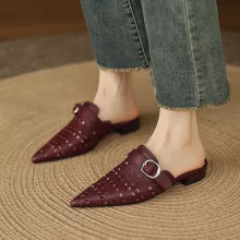 Perfect for indoor settings, these mules are ideal for lounging in style, working from home, or casual gatherings. Their breathable genuine leather and low heel make them comfortable for extended wear, while the pointed toe and slingback design elevate your look effortlessly. Whether paired with summer dresses or casual pants, these shoes bring a clean, concise aesthetic that complements any relaxed outfit.