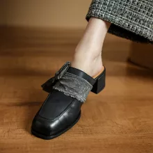 Discover the perfect blend of elegance and ease with these genuine leather women’s mules, designed for those who value both fashion and comfort. Crafted from high-quality cow leather, these slippers offer a soft, breathable fit that keeps your feet cool during warm summer days. The retro-inspired design with a covered toe and a sturdy square medium heel adds a vintage charm while providing reliable support for your daily walks or casual outings.