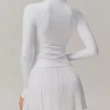 This jacket is tailored with a full-length sleeve and a smooth knit construction that blocks the wind while remaining lightweight. It fits true to size, hugging your form without restricting movement. The slit pockets provide convenient storage for small essentials like keys or your phone, making it a great companion for both gym sessions and outdoor runs.