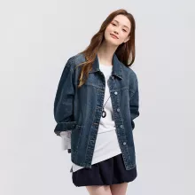Step into the season in style with this must-have loose denim jacket for women. Designed with a modern drop-shoulder fit and a classic lapel collar, this jacket combines everyday comfort with street-smart elegance. It’s crafted for the modern woman who values both fashion and functionality. Whether you’re running errands, grabbing coffee, or creating content for the ‘gram, this piece adds the perfect finishing touch to any look.