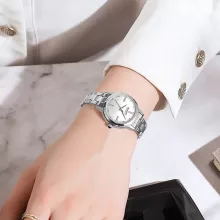 Elevate your style with this elegant women’s quartz watch, crafted for those who appreciate simplicity, luxury, and everyday practicality. With its sleek stainless steel band and minimalist round dial, this watch is the perfect accessory to complement both casual and formal outfits. Whether you are heading to work, a dinner date, or simply enjoying your day, this timepiece adds a touch of sophistication to your look.