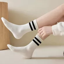 These socks feature a non-slip ribbed cuff that stays securely in place, giving you steady support during movement. Their mid-calf height offers ideal coverage, making them great for sneakers, boots, or everyday footwear. Crafted from durable polyester with added spandex, they feel soft, stretchy, and resistant to wear—perfect for daily use. The signature 2-stripe solid color design adds a timeless athletic look that never goes out of style.