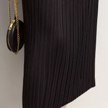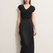 What truly sets this skirt apart is its balance of minimalism and functionality. The straight cut creates a slim, elongated look, while the pleats add subtle movement and femininity without being overdone. The elastic waistband ensures comfort without ruining the clean lines of the design. It’s a piece that feels simple, yet thoughtfully crafted for women who value both style and ease.