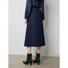 This skirt stands out with its blend of office-appropriate elegance and casual denim charm. The patchwork detailing sets it apart from typical denim skirts, adding an artistic touch without being overly bold. The mid-calf length provides warmth and coverage, making it ideal for crisp autumn days or layering with boots in winter. Its A-line shape ensures a comfortable fit that works well with blouses, sweaters, or even tailored jackets.