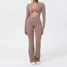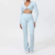 Created for fall and winter use, the long-sleeved top and matching bottoms offer light warmth while maintaining excellent breathability. The moisture-wicking fabric draws sweat away from your skin, helping it dry quickly so you stay fresh during cycling, pilates, fitness training, and even casual wear. Its solid-color design and sleek silhouette make it easy to pair with your favorite sneakers or outerwear.