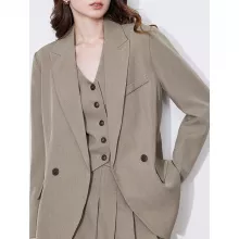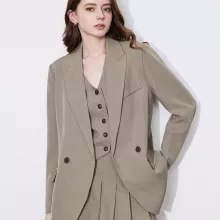 - Closure: Double-breasted button closure that adds a classic, tailored appeal to the jacket.