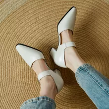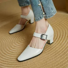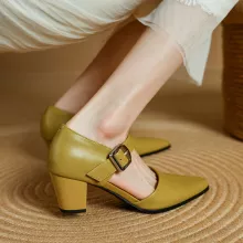 Crafted from genuine cow leather, these pumps offer a luxurious feel and durability that lasts. The soft sheepskin insole gently cushions your feet, making every step comfortable from morning to night. The rubber outsole ensures reliable grip and stability, while the square heel measures a comfortable 2.2 inches, giving you height without sacrificing balance. The buckle strap closure adds a timeless touch and a secure fit.