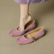Women’s Square Toe Low Heel Mary Janes Pumps with Buckle Strap