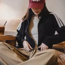 • Stylish Design: The jacket boasts a chic striped splicing pattern, adding a pop of style while maintaining a minimalistic streetwear vibe.