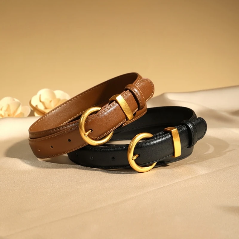 Women’s Vintage Leather Belt with Gold Pin Buckle