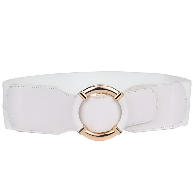 Women’s Wide Elastic Waist Belt with Gold Circle Buckle for Fashion