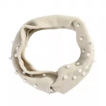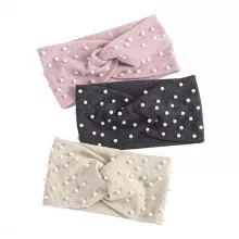 • Design: Wide, turban-style headband with a chic knotted front and pearl embellishments