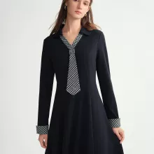 Don’t miss out on this blend of style, comfort, and elegance. Add the plaid tie-neck dress with asymmetric panels to your cart today and embrace the season in style!