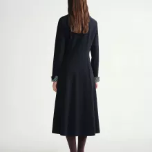 This dress can be effortlessly styled with ankle boots and a tailored coat for a chic look. Pair it with a belt to accentuate your waist, or add a scarf for extra warmth and style. Its versatile design allows for numerous styling possibilities, making it a must-have for your wardrobe this season.