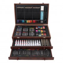 This art kit is thoughtfully designed to give you a wide range of professional tools, neatly organized in a durable wooden case. Inside, you’ll find: