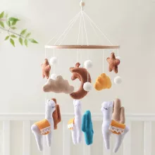 The soft felt alpaca doll adds a touch of warmth and whimsy, while the gentle lullaby music creates a peaceful atmosphere for your newborn to relax and drift off to sleep. This beautifully crafted mobile is the perfect blend of functionality and style, bringing joy to both babies and parents alike.