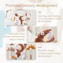 Perfect for newborns, this mobile is an excellent way to provide visual stimulation with its bright, eye-catching colors and patterns. As your baby grows, they will be delighted by the spinning toys and begin reaching out, promoting their fine motor skills and hand-eye coordination. The soft sounds and tactile experience create a nurturing environment where your baby can feel secure and entertained, helping reduce fussiness and encouraging calmness during sleep.