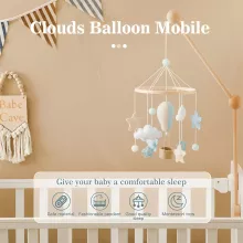 - Whimsical Design: Adorable cloud and hot air balloon plush toys hang gently above your baby, creating a dreamy atmosphere.