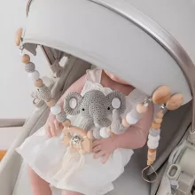 Bring comfort, fun, and gentle stimulation to your little one’s day with this charming wooden baby pram clip set. Designed with a soft crochet elephant, smooth wooden beads, and a handy soother chain, this set offers everything a parent needs to keep their baby soothed and entertained. Each piece is thoughtfully crafted to be safe for tiny hands and perfect for babies from newborn to 12 months and beyond.