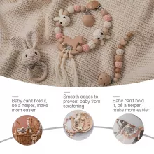 This set features natural wood pieces polished to a smooth finish and soft crochet details in a cute animal shape. The teething bracelet and stroller rattles are made to gently soothe sore gums, while the pram clip helps keep pacifiers clean and within reach. Lightweight and easy to attach, the toys fit perfectly on strollers, cribs, prams, or even baby play gyms. All materials are baby-friendly and comfortable to chew, making them ideal for everyday use.