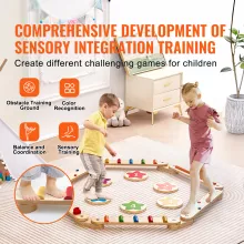 I was looking for something that would help my kids develop better coordination skills but also keep them entertained - this set does exactly that. It's not just about balancing on the wooden beams or hopping from one colorful stone to another, it's about problem-solving as they figure out how best to navigate the course they've made up themselves. Also appreciate how safe everything is with rounded edges and child-safe varnish.