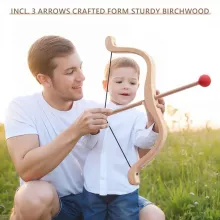 - Set Includes: 1 wooden bow, 3 safety arrows, 1 quiver, and 1 arm guard.