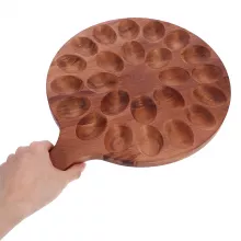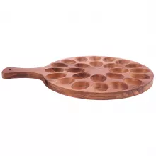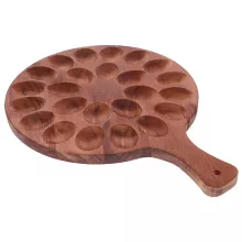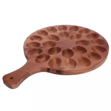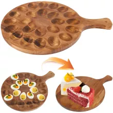 Made from high-quality wood, this deviled egg tray is durable, reliable, and built to last. Its smooth, polished surface ensures a comfortable grip, while the precisely carved slots keep your eggs in place, preventing spills and messes. With a compact and stackable design, you can conveniently store your prepared eggs in the refrigerator before serving.