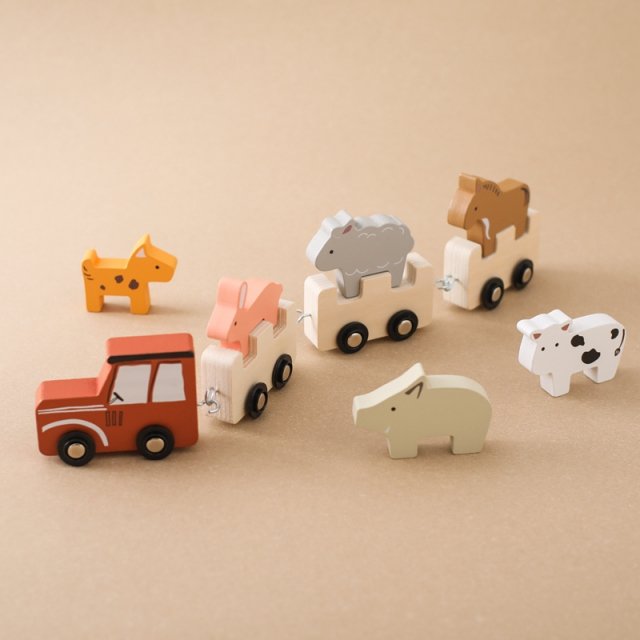 Unlike ordinary toys, this set combines the charm of a classic wooden train with the educational benefits of a stacking block set. The farm animal theme introduces children to different creatures while they enjoy pretend-play adventures. Each block is sized perfectly for small hands, making it easy and safe for little ones to grasp, stack, and arrange. Plus, the pull-along train feature keeps children active and engaged, promoting both physical movement and cognitive growth.