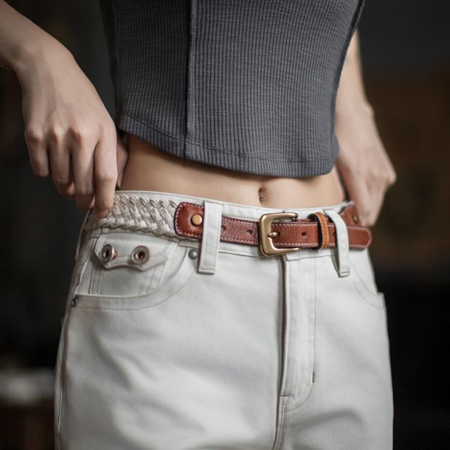 Woven Leather Boho Belt for Women – Adjustable Full-Grain Cowhide
