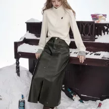 This skirt is not just another winter basic. Its unique cartoon pattern adds a playful twist to a classic A-line design, mixing sweet vibes with a bold Y2K edge. The faux leather look creates a sleek, high-fashion finish while still feeling soft and wearable for everyday use. The front slit adds just the right amount of attitude and allows easy movement when walking or sitting.