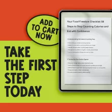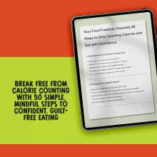 Your Food Freedom Checklist is your first step toward lasting change. With 50 steps grounded in mindfulness and self-kindness, this guide is your daily reminder that food doesn’t have to be a battle. Download it now and discover how to stop counting calories and start eating with confidence. Your freedom begins today.