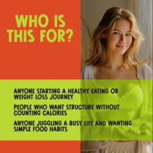 - Actionable tips on portion control, meal timing, mindful eating, and more